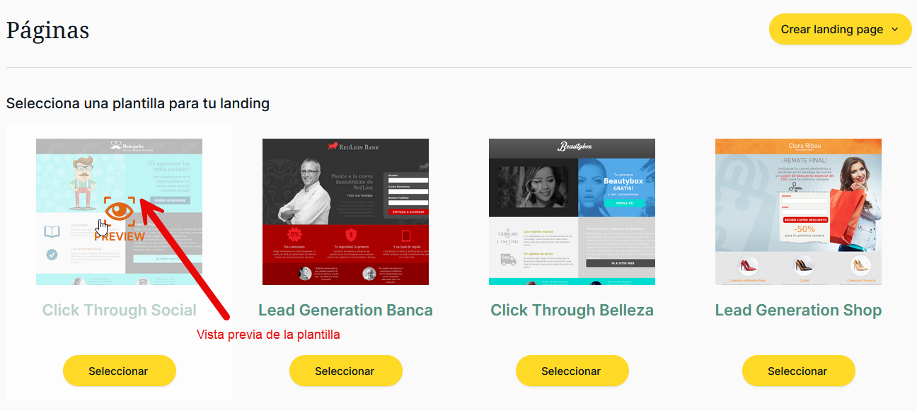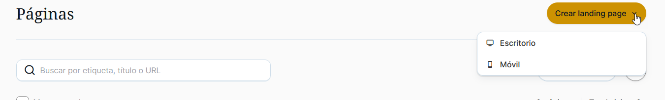 Nota: Puedes crear landing pages adicionales haciendo clic en el botón «Crear landing page».