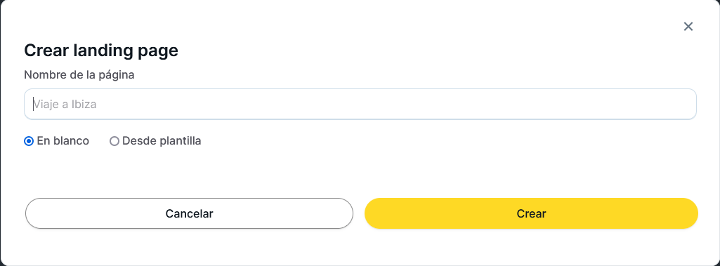 3. Selecciona cómo quieres crear tu página. Si quieres crearla desde 0, sin plantilla activa selecciona «En blanco». Automáticamente aterrizarás en la página del editor para que puedas darle forma a tu página.