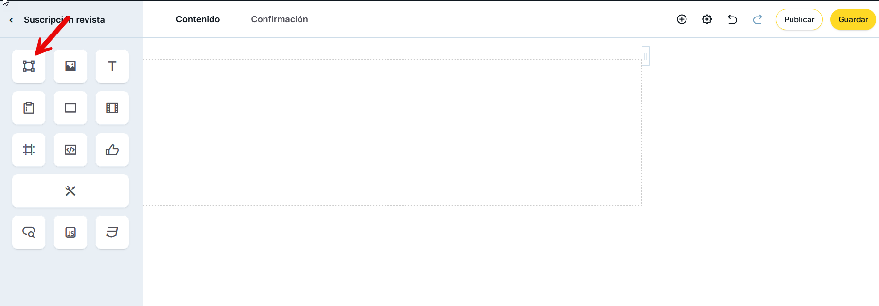 4. Accederás al editor de Landing Optimizer que te permitirá arrastrar los elementos que desees agregar a las secciones de tu página. Primero tienes que arrastrar la «sección» para luego poder insertar los componentes dentro de la sección. (Más sobre el editor: https://mdtr.io/pL8Ha)