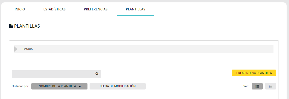 Una vez accedas a la sección «Plantillas» dentro de «Email transaccional», puedes hacer clic en el botón amarillo «Crear nueva plantilla».