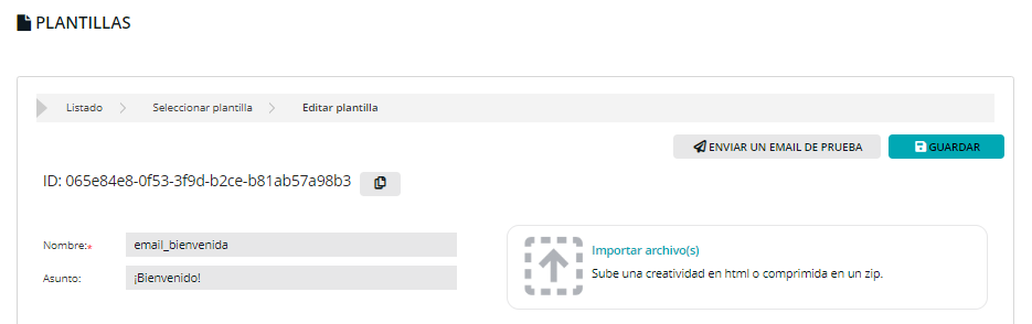 – ID: es la cadena alfanumérica que identifica a la plantilla para poder ser llamada por programación mediante API o SMTP.