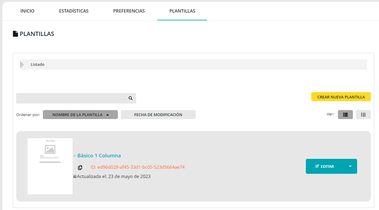 Para poder realizar envíos transaccionales, ya sea por SMTP o por API, si se utiliza de forma frecuente la misma estructura de contenido para cada tipo de envío (bienvenida, confirmación de pedido, …), se pueden utilizar plantillas para facilitar el uso. Se pueden crear y utilizar tantas como se desee y su mantenimiento es sencillo y ágil. Además permiten incluir personalizaciones y contenido dinámico.