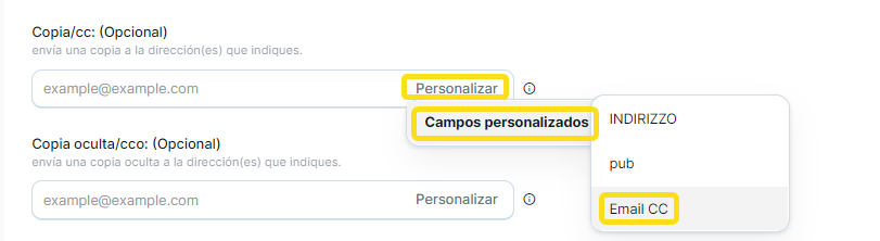 Campo personalizado Email CC: Contacto P