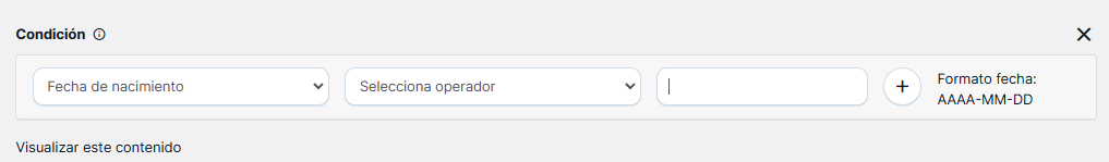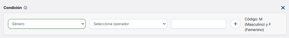 Desde está página podrás ver los diferentes códigos que debes incluir en la caja de texto «Valor» cuando selecciones el campo País, Género, Provincia y Fecha de una condición dentro de la creación del contenido dinámico.