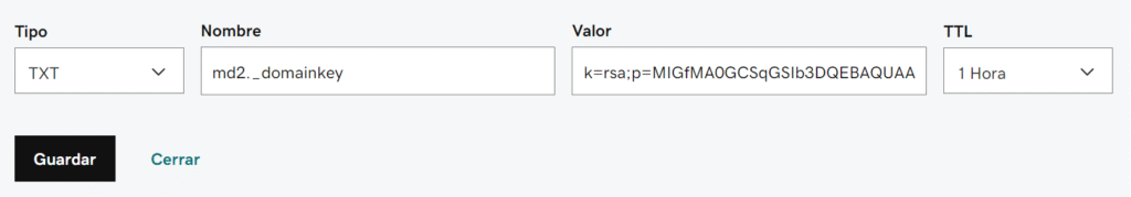 ENTRADA 2 (OBLIGATORIA): Configuración del DKIM