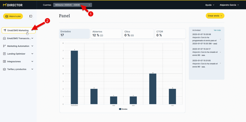 Asegurándote de que estas en la subcuenta correcta, selecciona el módulo de Email Marketing en el menú lateral.