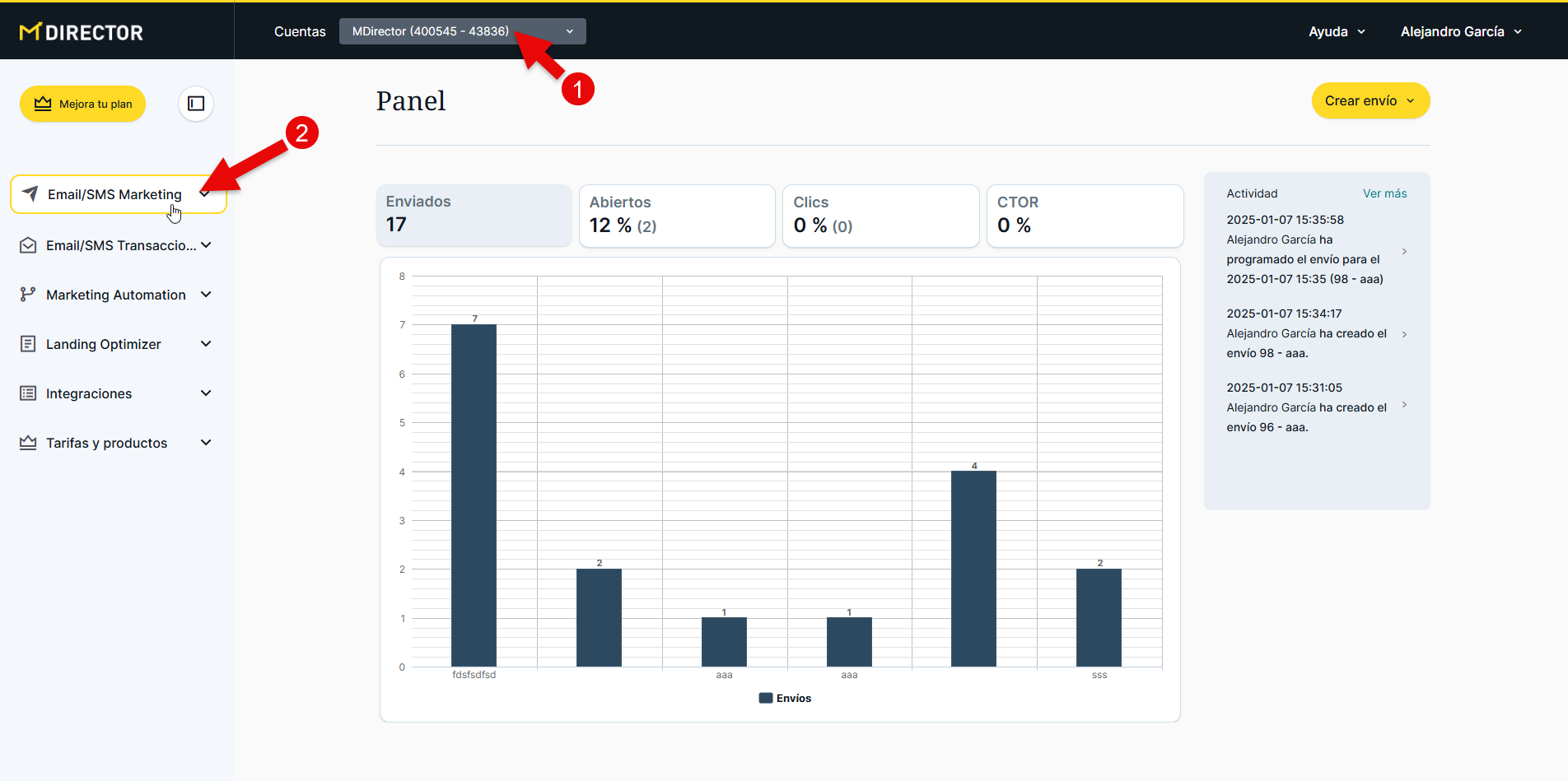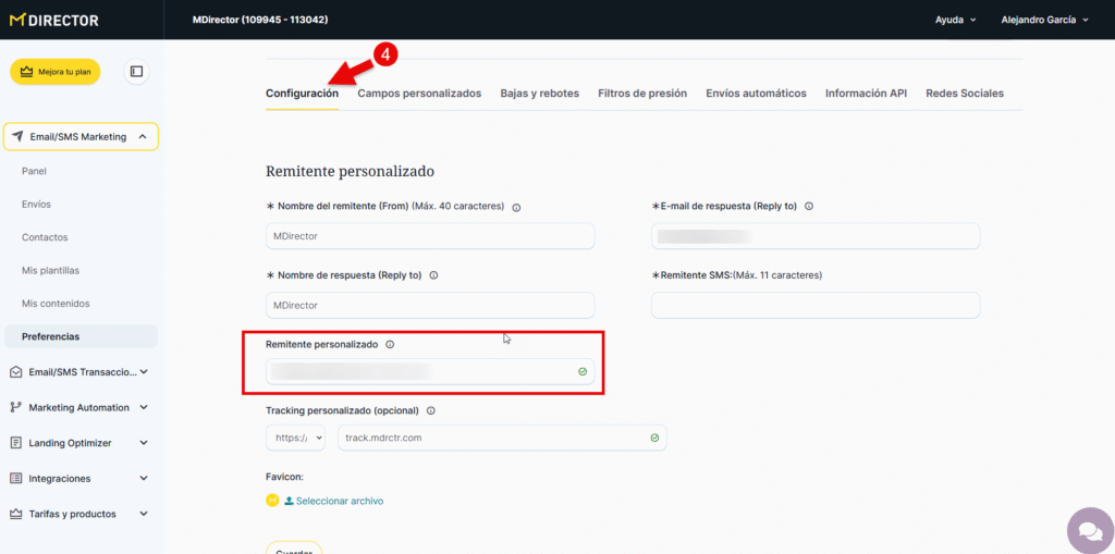 Si quieres consultar en MDirector cuál es el remitente personalizado de tu subcuenta y/o modificarlo, puedes hacerlo siguiendo estos pasos.