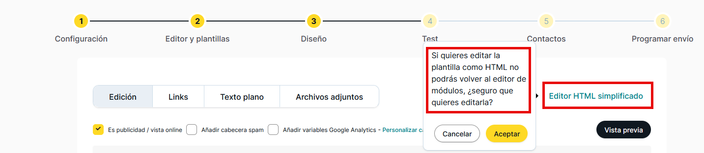 - Independientemente de que se haga sobre un envío o sobre una plantilla, recomendamos hacer un duplicado del mismo y pasar dicho duplicado al editor HTML manteniendo así el original en el editor D&D.