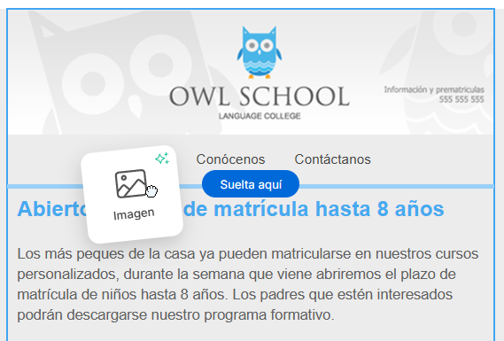 1.Arrastra un bloque de imagen a tu plantilla