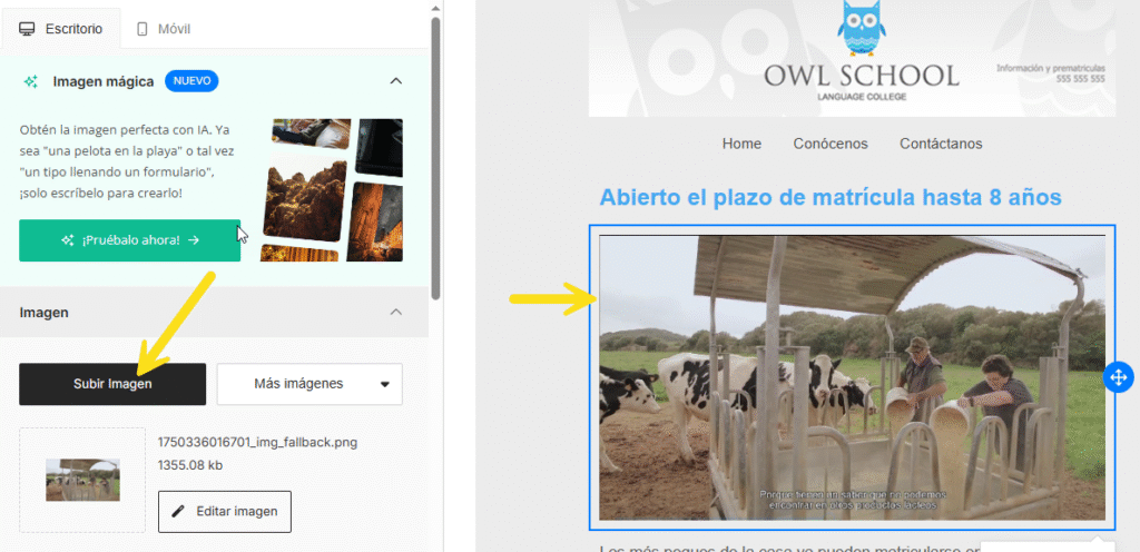 3. En el menú lateral izquierdo, haz clic en ‘Subir imagen’.