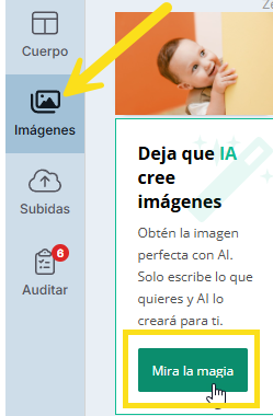 Nuestro editor mejorado te permite crear imágenes con inteligencia artificial, para que tengas justo lo que necesitas sin salir del editor. Solo sigue estos pasos: