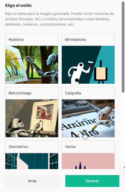 5. Elige el estilo de tu imagen o haz clic en ‘Genera’ para continuar