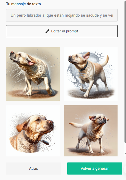 6. Se crearán varias imágenes para que elijas la que más te guste. Si quieres, puedes editar el prompt y generar más opciones hasta encontrar la imagen perfecta para tu plantilla