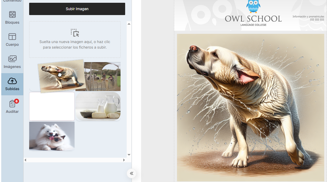 7. Las imágenes se guardan automáticamente en la Media Library. Desde ahí, solo tienes que arrastrarlas a la plantilla y colocarlas en el bloque de imagen que quieras