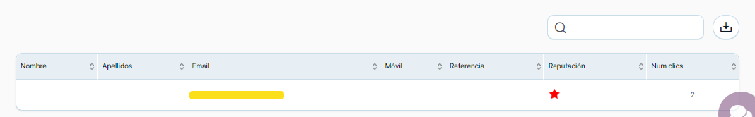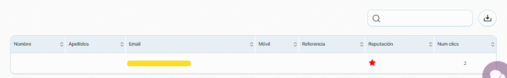 En la parte inferior de este informe se muestra listado de todos los contactos que han realizado clics, además puede buscar uno en concreto o descargar el listado completo de estos contactos.