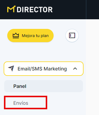 Para poder visualizar tus envíos y avanzar un paso más, tienes que entrar en el apartado de Email Marketing o SMS en la ventana ‘Envíos’.