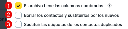 Con la casilla «Borrar los contactos y sustituirlos por los nuevos«, podemos elegir si queremos eliminar todos los contactos que existen actualmente en la lista y subir los que tengamos en el nuevo archivo.