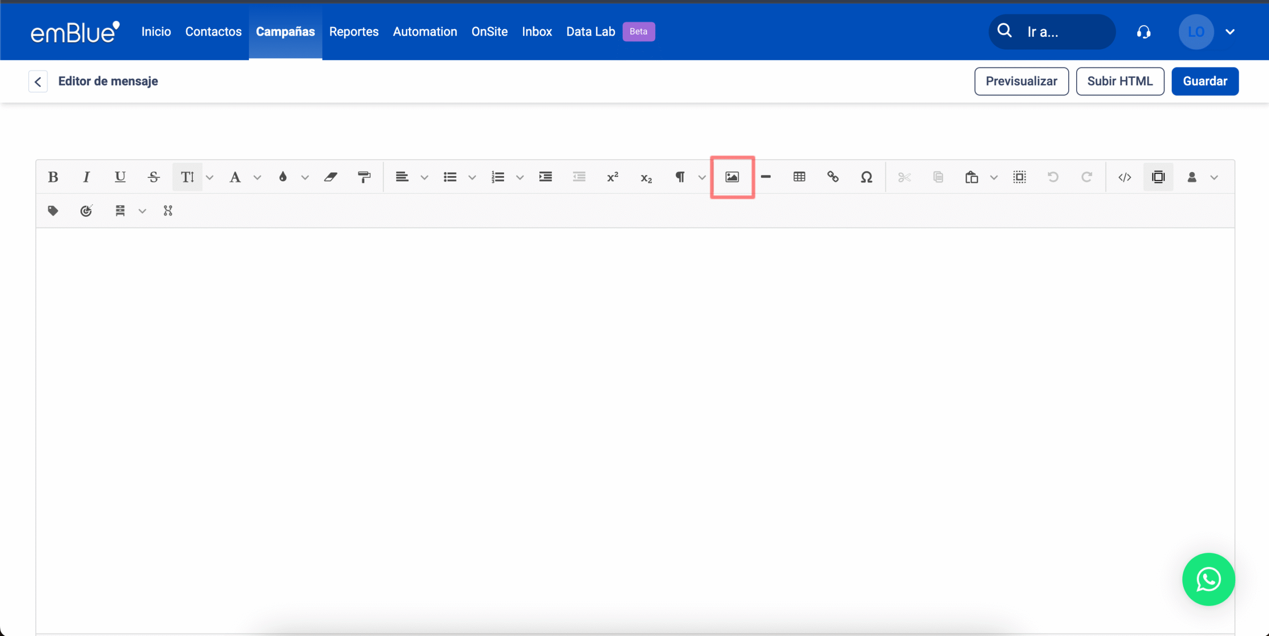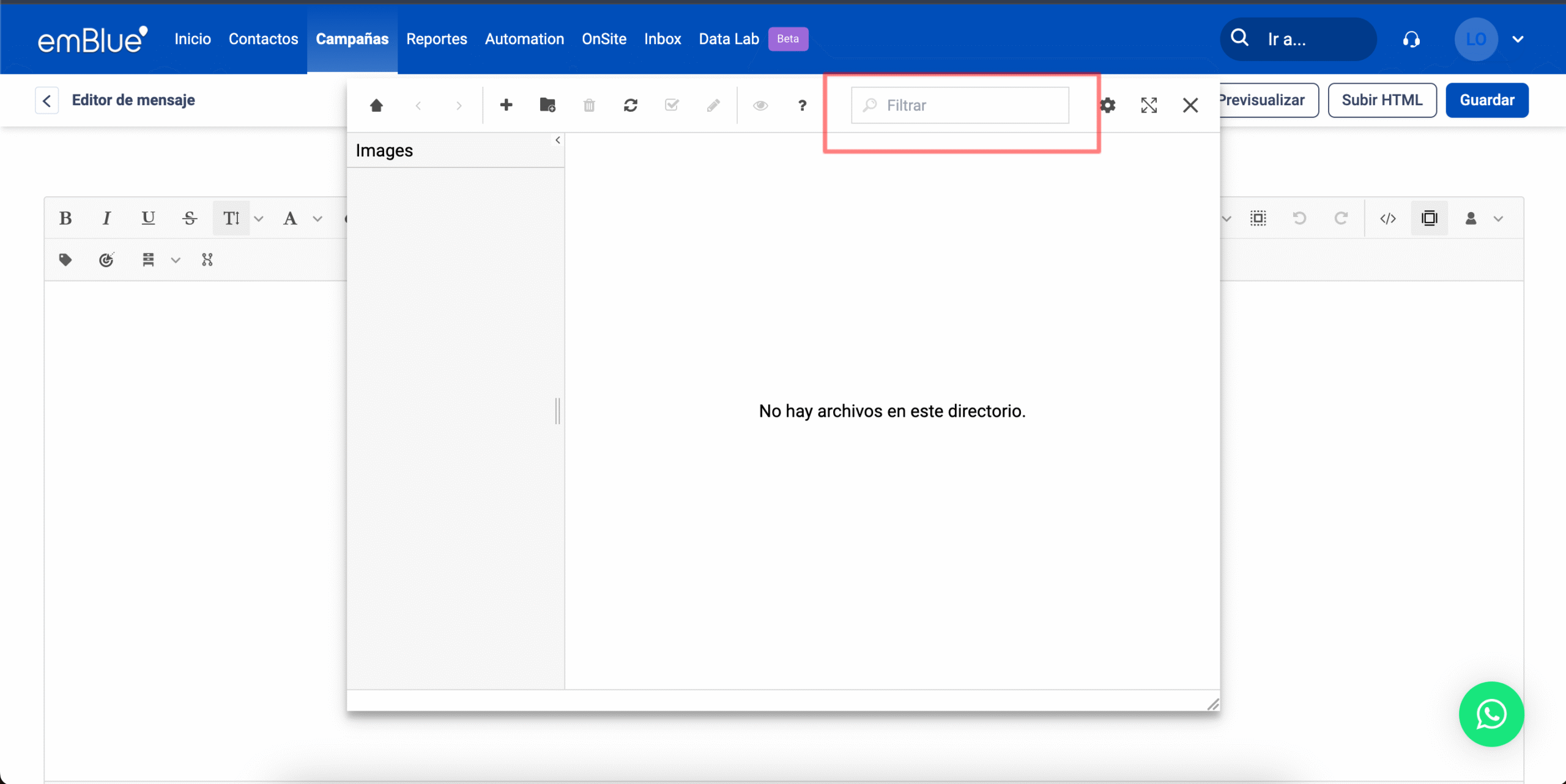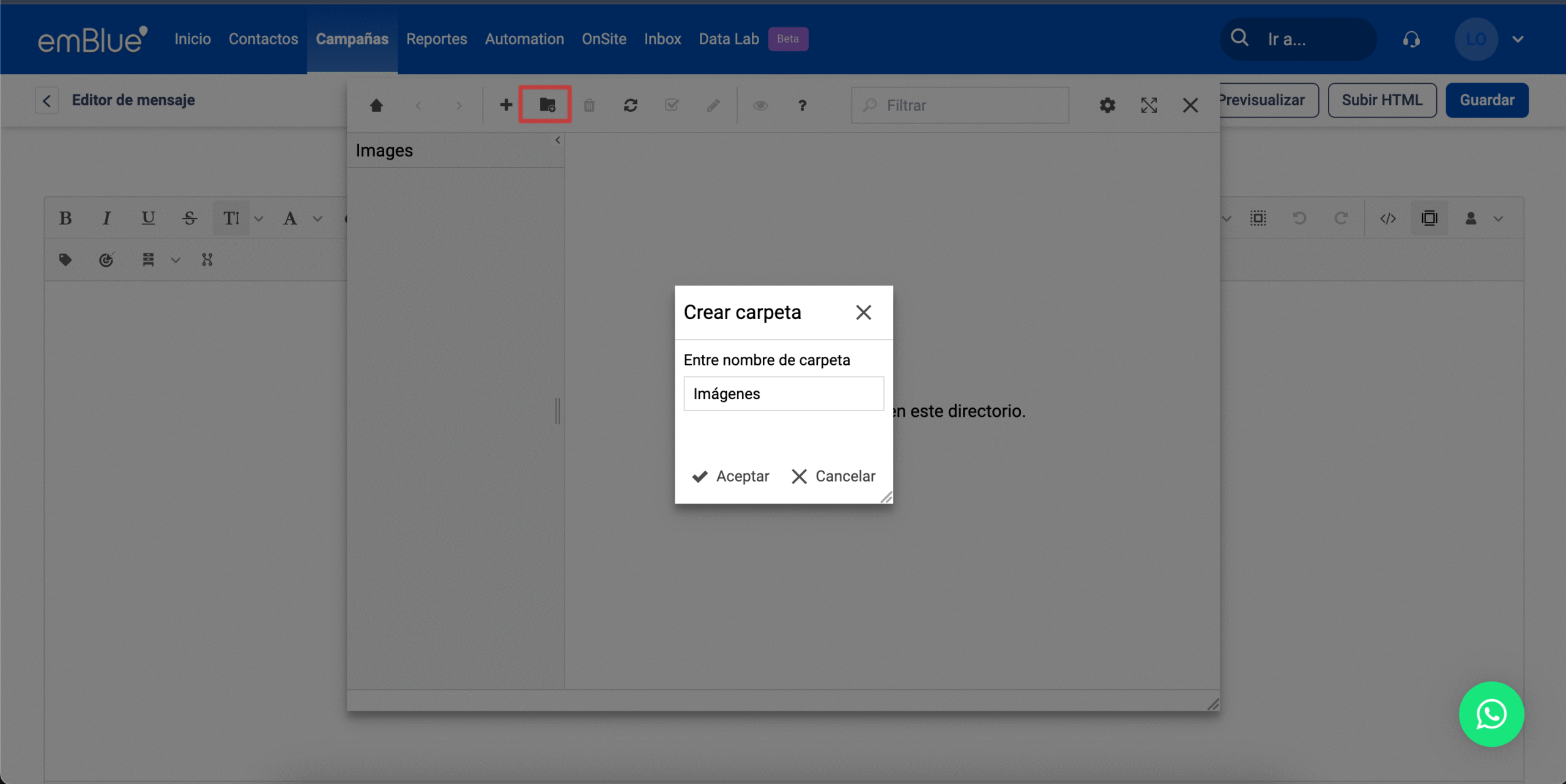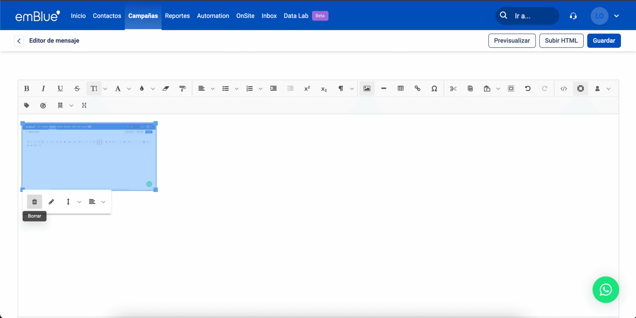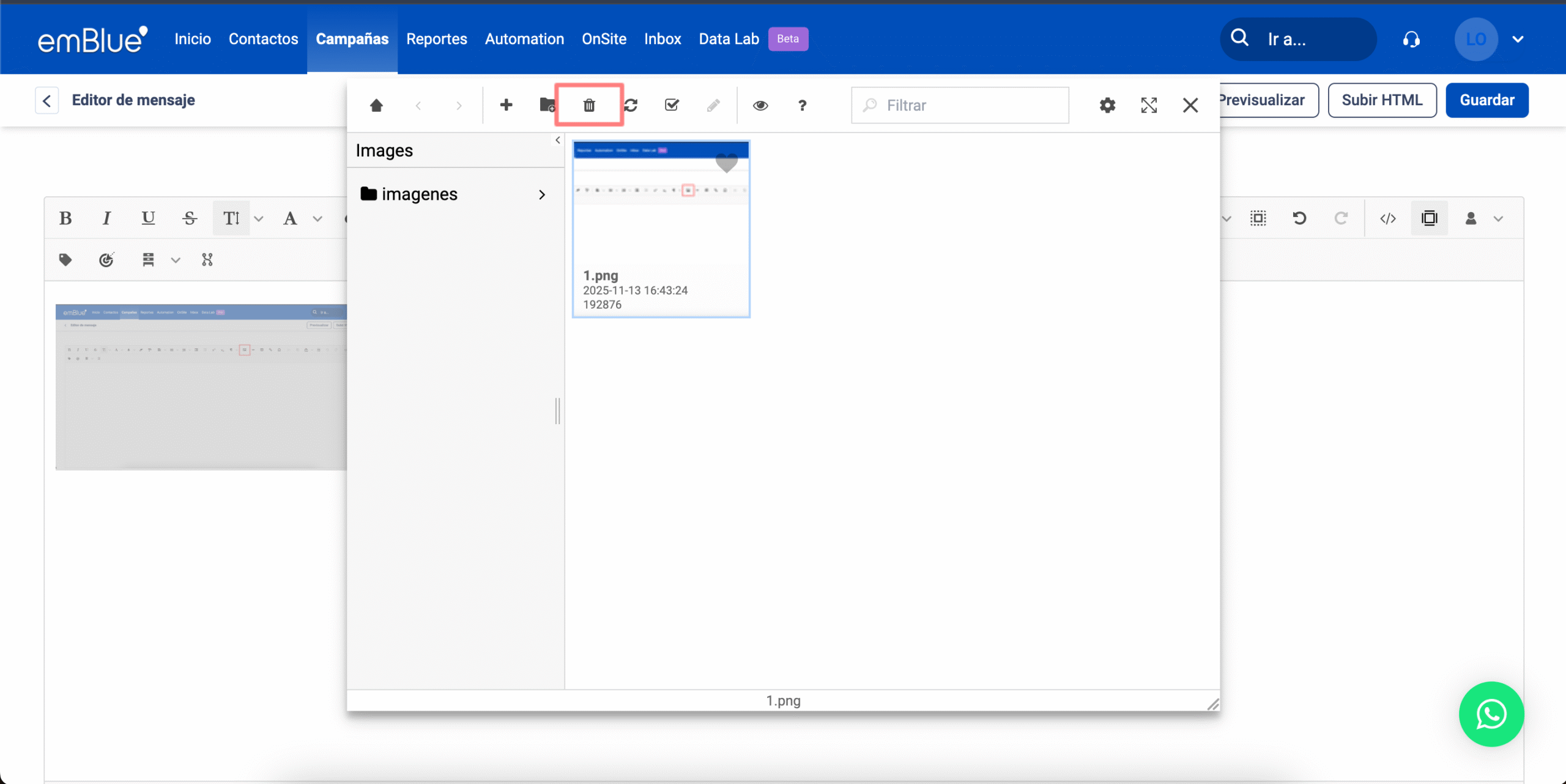 Para editar imágenes dentro de emBlue, en esta misma ventana debemos tildar la imagen que queremos modificar, clickeamos en “Administrar” y luego en “Editar”.
