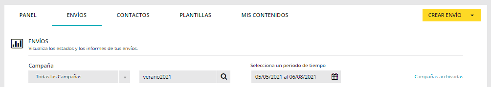 1. Para localizar envíos desde el buscador del panel «Envíos».