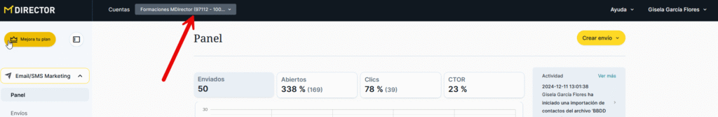 El empID es el identificador de tu subcuenta. Lo puedes encontrar en la esquina superior izquierda de la pantalla, a un lado del logo de MDirector.