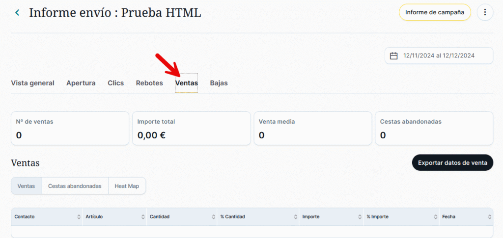 En el informe del envío podremos ver bajo la pestaña «Ventas» toda la actividad que nuestros enlaces vayan produciendo: