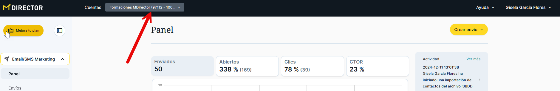 El empID es el identificador de tu subcuenta. Lo puedes encontrar en la esquina superior izquierda de la pantalla, a un lado del logo de MDirector.