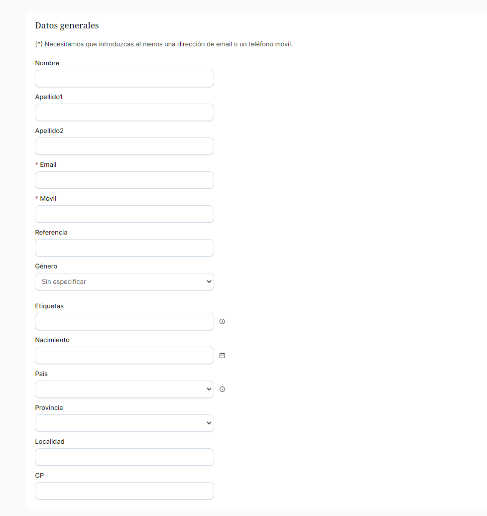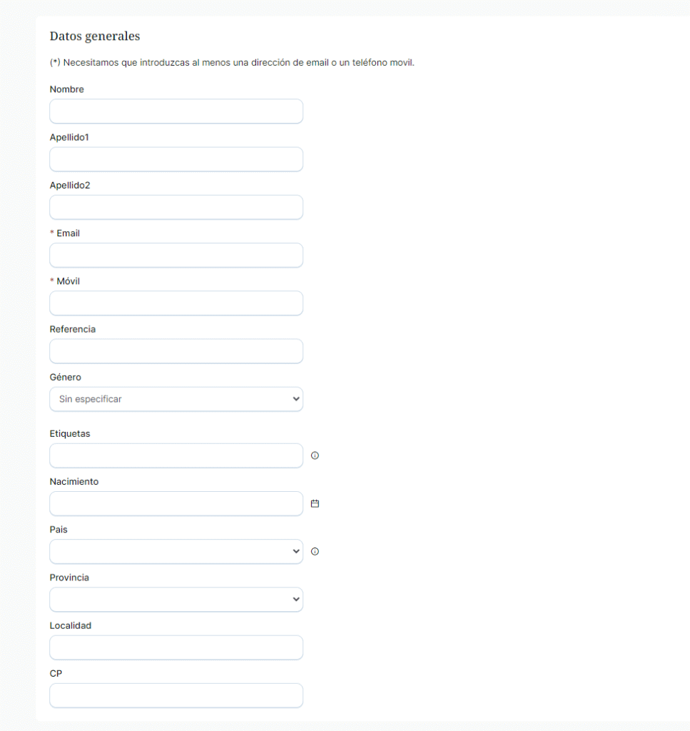Esta opción permite importar un contacto de forma manual escribiendo cada uno de los campos del contacto: