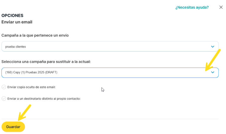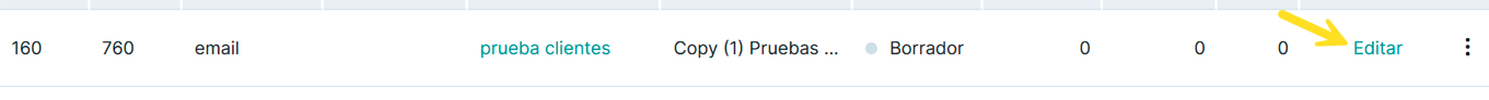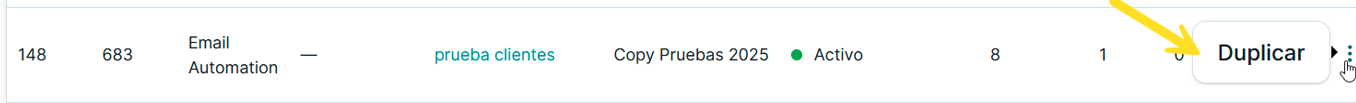- Duplica el envío que quieres reemplazar y que se encuentra en estado Activo, desde la sección Email/SMS Marketing.