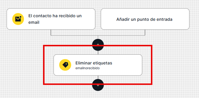 Observarás que el paso se ha colocado sobre el editor del escenario. De ahora en adelante, cada vez que un contacto alcance ese nodo, se le eliminará la etiqueta o etiquetas que hayas configurado.
