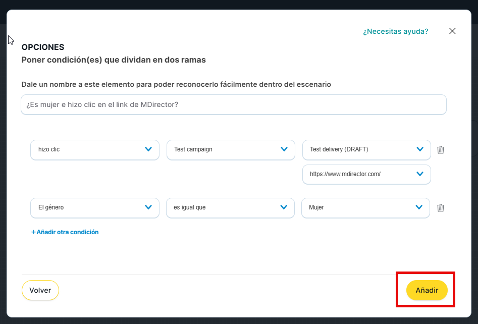 Cuando hayamos definido todas las condiciones, pulsamos sobre el botón de «Añadir».