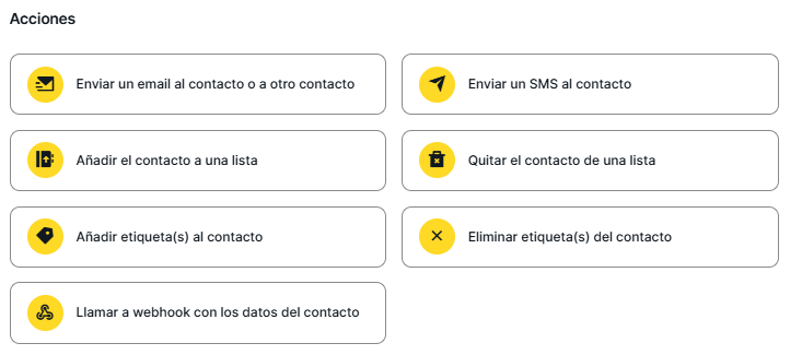Estas acciones te permiten personalizar la experiencia del usuario, activar comunicaciones automatizadas y actualizar la información de tus contactos.