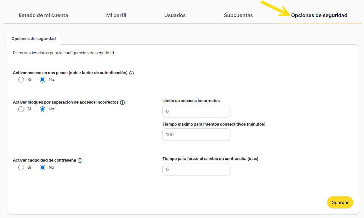 3. Dentro de «Mi cuenta MDirector», tendrás acceso a la pestaña «Opciones de Seguridad».