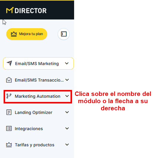 Tal y como explicamos en este artículo: https://mdtr.io/yuxQc, MDirector es una plataforma multifuncional para la gestión completa de tus campañas de email y SMS, y las herramientas que ponemos a tu disposición están organizadas por módulos o servicios a los que se puede acceder desde el menú lateral, siempre visible en el perfil izquierdo de la pantalla.