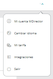 1. Haz clic en Mi cuenta MDirector dentro del menú de usuario de la cabecera de MDirector.