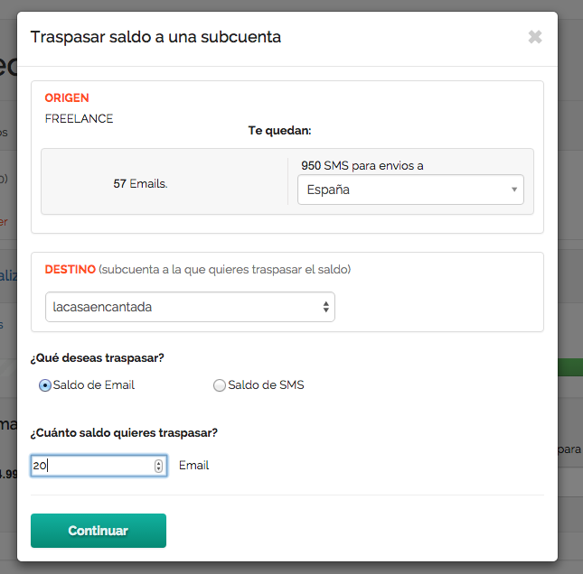 Asignar saldo de tu bono de EMAIL a una subcuenta