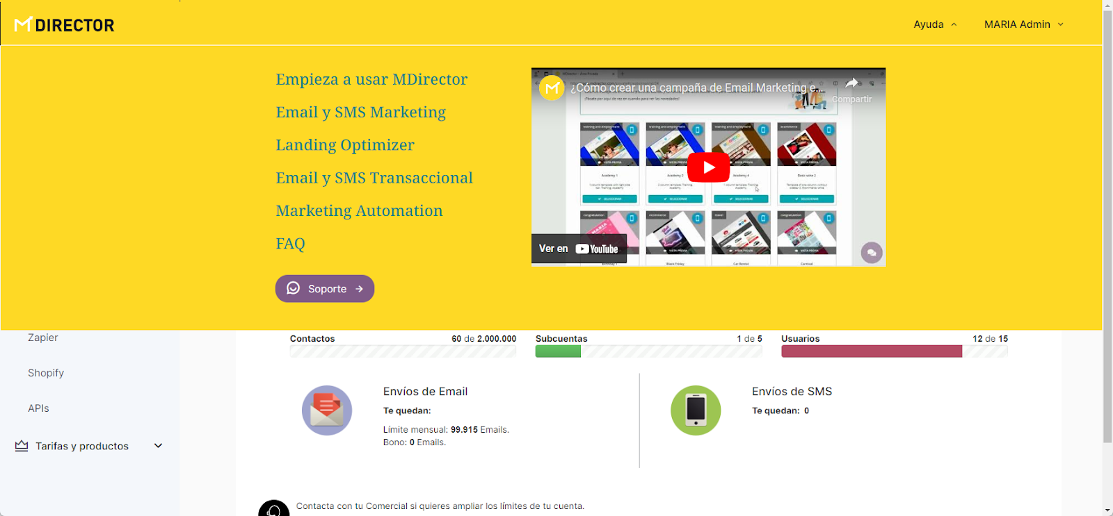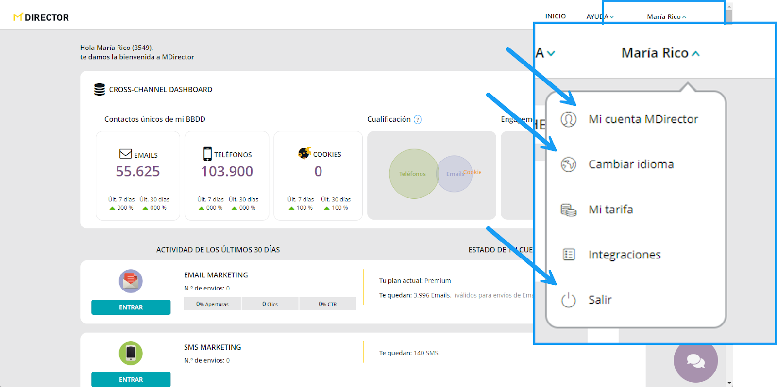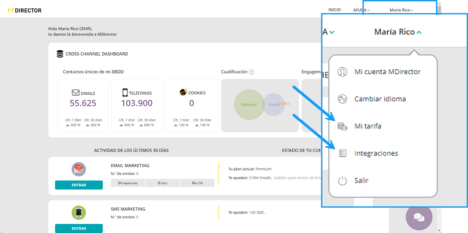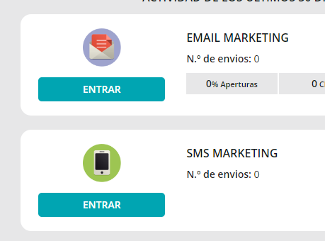 Email y SMS Marketing pasan a estar en el mismo lado (en realidad ya lo estaban. Solo cambia que se hace desde un único punto de acceso).