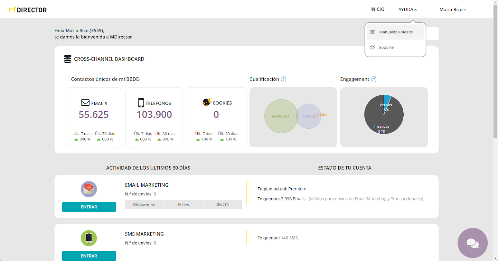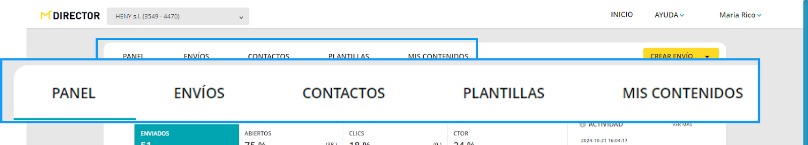 ACCESO A LA PLATAFORMA : No hay cambios, desde www.mdirector.com mismo botón, y con tu usuario y password.