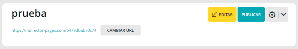 Cuando estés listo para publicar tu página, puedes hacerlo desde el botón azul «publicar» que se encuentra en la parte superior derecha de la página específica de la landing page.