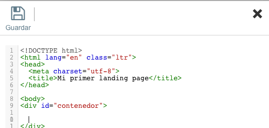 2. Añade el HTML. Para ello arrastra el icono HTML a la sección . Se abre la ventana correspondiente. Inserta tu código HTML.