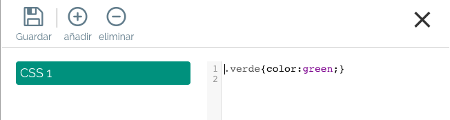 Ejemplo: queremos poner en verde un texto. Para esto añadimos la propiedad correspondiente y le damos un nombre a nuestra clase (.verde).
