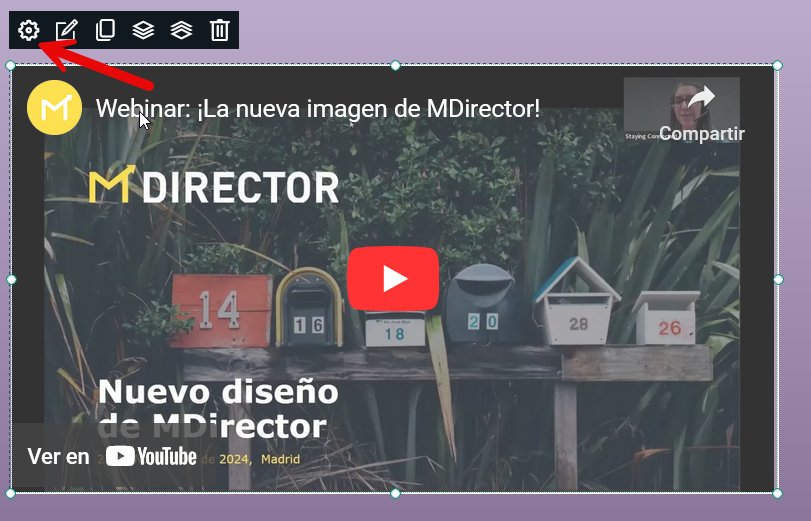 Edita las propiedades de tu video seleccionando el icono de ‘Configuración’.