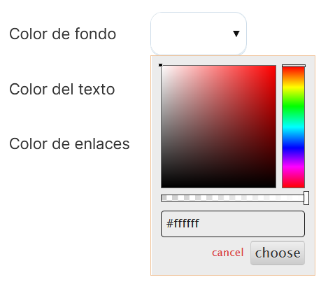 Desde esta sección, puedes personalizar el ancho, cambiar el fondo de la página, y modificar el color de los enlaces y del texto general de tu landing.